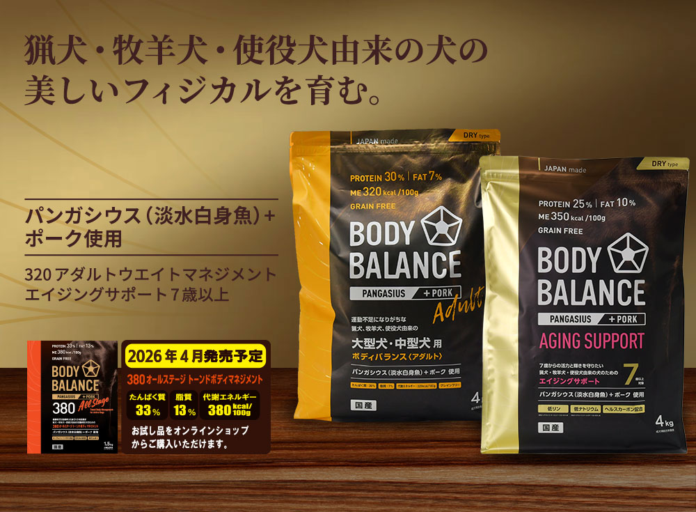 Body Balanceは、アクティブな資質を持つ犬たちの美しいフィジカルを育むために誕生しました。